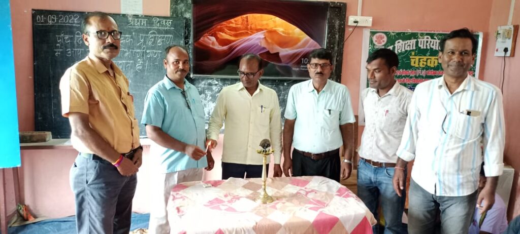 फ़ोटो(दीप प्रज्वलित कर प्रशिक्षण का उदघाटन करते बीईओ)।