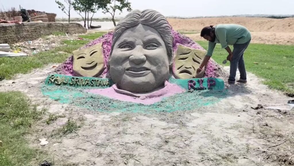 छपरा (सारण)। जानेमाने हास्य कलाकार राजू श्रीवास्तव के निधन से पूरा देश मर्माहत है। सैंड आर्टिस्ट अशोक ने अपने अंदाज में उन्हें श्रद्धांजलि दी है। उन्होंने सरयू नदी के किनारे सीढ़ी घाट के पास सैंड आर्ट बनाकर उन्हें नमन किया। अशोक ने कहा कि यह एक बहुत बड़ा सदमा है। हमलोगों के जनरेशन ने टीवी पर हंसना उनसे सीखा। हर किसी भारतीय के दिल में वो बैठे हुए हैं। आप कितने भी सदमे में हो आप अगर उनके वीडियो को देख लेंगे तो आप दिल से हंसने लगेंगे। कलाकर अशोक कुमार के साथ सैंड आर्ट बनाने में सहयोग किया सोनू कुमार, कौशल कुमार का सहयोग रहा। कलाकारों ने गहरा दु: ख प्रकट किया प्रसिद्ध तबला वादक व संगीताचार्य राजेश मिश्रा ने ‘मशहूर कॉमेडियन श्री राजू श्रीवास्तव के निधन पर गहरा दुख प्रकट किया। कहा कि ग्रेट इंडियन लाफ्टर चैलेंज के राजू श्रीवास्तव ने सभी को खुश किया लेकिन इस बार उन्होंने हमें आंसू बहाने पर मजबूर कर दिया। उनकी आत्मा को शांति मिले।