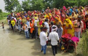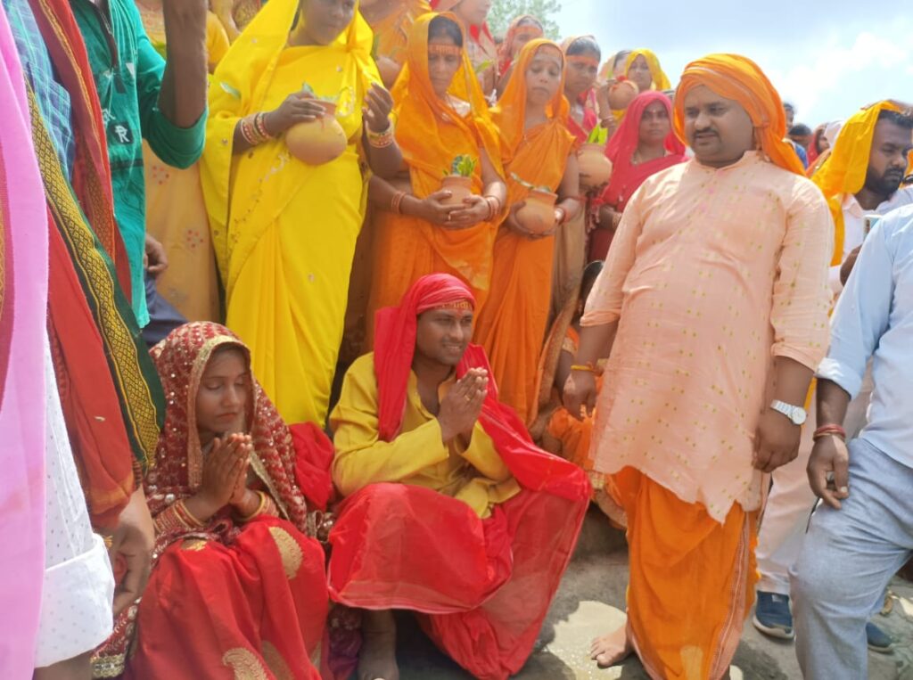 तरैया (सारण)। प्रखंड के रामपुर महेश गांव स्थित माँ भगवती स्थान परिसर में शारदीय नवरात्रि के अवसर पर बुधवार को 24 घंटे का अखंड अष्टयाम प्रारंभ हुआ। इसके पूर्व भव्य कलश यात्रा सह शोभायात्रा निकाली गई। शोभा यात्रा में देवी के नवो रूप की परिवेश में झांकिया निकाली गई। शोभायात्रा यज्ञ स्थल से निकलकर शिव मंदिर होते हुए मही नदी घाट पर पहुची। जहां आचार्य सुकेश त्रिवेदी के वैदिक मंत्रोच्चारण के बीच मुखिया अमित सिंह सपत्निक सहित सैकड़ों महिलाओं ने पवित्र जलभरी की। कलश यात्रा सह शोभा यात्रा में 551 महिलाएं रंग-बिरंगे परिधान में कलश के साथ शामिल हुई। गाजा-बाजा, हाथी घोरे व डीजे की धुन पर लोग जय श्रीराम, जय माता दी के जयकारा लगाते चल रहे थे। कलश यात्रा के बाद हरिनाम संकीर्तन प्रारंभ हुआ। जिसमें क्षेत्र के दर्जनों गायन मंडली और जनप्रतिनिधि शामिल हुए। कलशयात्रा में मुख्य यजमान मुखिया अमित सिंह सपत्नीक, भटगाई ओम प्रकाश राम, पूर्व बीडीसी नागेंद्र प्रसाद, दिलीप सिंह कन्हैया बाबा, रविंदर कुमार, सरपंच राज बल्लभ प्रसाद, कृष्णा कुशवाहा, धुपनाथ राय, छठु कुशवाहा, वीरेंद्र राय, अरुण सिंह, राजा कुमार, दीपक पंडित, समेत पंचायत के सैकड़ों लोग शामिल हुए। बता दें की उक्त स्थान पर वर्षों से सार्वजनिक अखंड अष्टयाम होते आ रहा है।