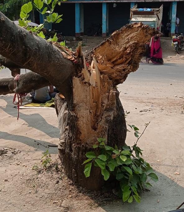 मशरक (सारण)। थाना क्षेत्र के डुमरसन मुख्य बाजार स्थित एस एच 90 से होकर गुजरने वाली डुमरसन पोस्ट ऑफिस रोड के कोने पर स्थित प्रमोद फ्रूट के पास वर्षो पुरानी विशालकाय पेड़ देखते-देखते ही जमीनदोज हो गया हैं। हालांकि इसमें किसी भी प्रकार की अप्रिय घटना घटित नहीं हुआ लेकिन प्रमोद फ्रूट के ऊपर वर्षो पुरानी विशाल नायक वृक्ष जा गिरा बाल बाल बचे दुकानदार जिसमें दुकानदार सुरक्षित रूप से बाहर निकाला गये और जिसमें दो मोटरसाइकिल सवार लोगों को हल्की चोट लगी है वही ग्रामीणों ने बताया कि यह विशालकाय पेड़ वर्षो पुरानी है, देखते ही देखते हैं अपने आप ही जमीनदोज हो गया जिसमें किसी भी प्रकार की जान माल की हानि नहीं हुई।