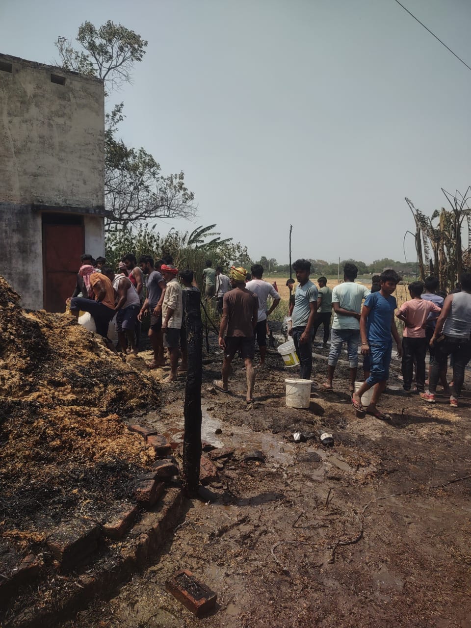 फोटो(आग बुझाने में जुटे ग्रामीण)।