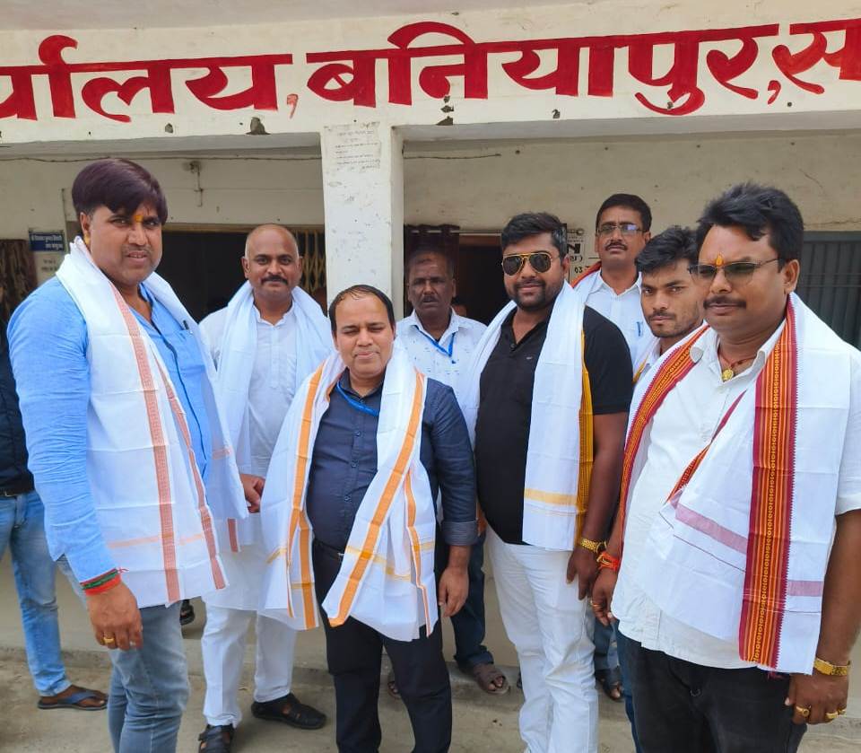 बनियापुर (सारण)। मुखिया संघ के प्रखंड अध्यक्ष के नेतृत्व में सोमवार को अलग- अलग पंचायत के एक दर्जन से अधिक मुखिया एवं उनके प्रतिनिधियों ने बीडीओ से मिलकर विभिन्न योजनाओं पर चर्चा करते हुए अपने कॉमन एजेंडे पर विचार- विमर्श किया। इस दौरान बीडीओ कर्पूरी ठाकुर ने मुखिया संघ के साथ सकारात्मक वार्ता करते हुए उनके सभी मांगो पर नियमानुसार पहल करने की बात कही।बैठक के उपरांत नव निर्वाचित मुखिया संघ के प्रखंड अध्यक्ष द्वारा बीडीओ सहित सभी उपस्थित मुखियागण को अंग वस्त्र प्रदान कर सम्मानित किया गया। साथ ही सभी जनप्रतिनिधियों को अपने- अपने पंचायत में विकास कार्यो को गति देने की अपील की गई। वही किसी भी प्रकार की समस्या आने पर मिल जुलकर निबटारा करने की बात कही गई। मौके पर भुषाव पंचायत के मुखिया प्रतिनिधि संजीव कुमार उर्फ पप्पू सिपाही, सतीश ठाकुर, राजू शर्मा, बीरबहादुर राम सहित दर्जन भर से अधिक प्रतिनिधि उपस्थित रहे।